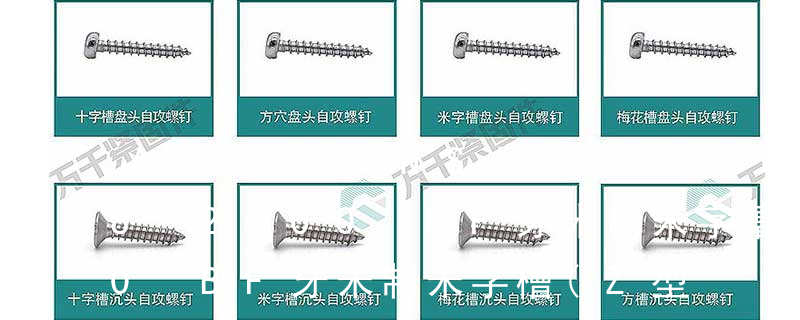 1.機螺釘 2.自攻螺釘 3.鉆尾螺釘 4.墻板釘 5.纖維板釘 6.木螺釘7.六角木螺釘 8.不脫出螺釘 9.組合螺釘 10.微型螺釘 11.家具螺釘 12.電子螺釘頭型:1.六角頭(hexagon head) 2.六角頭法蘭面(hexagon head with flange) 3.